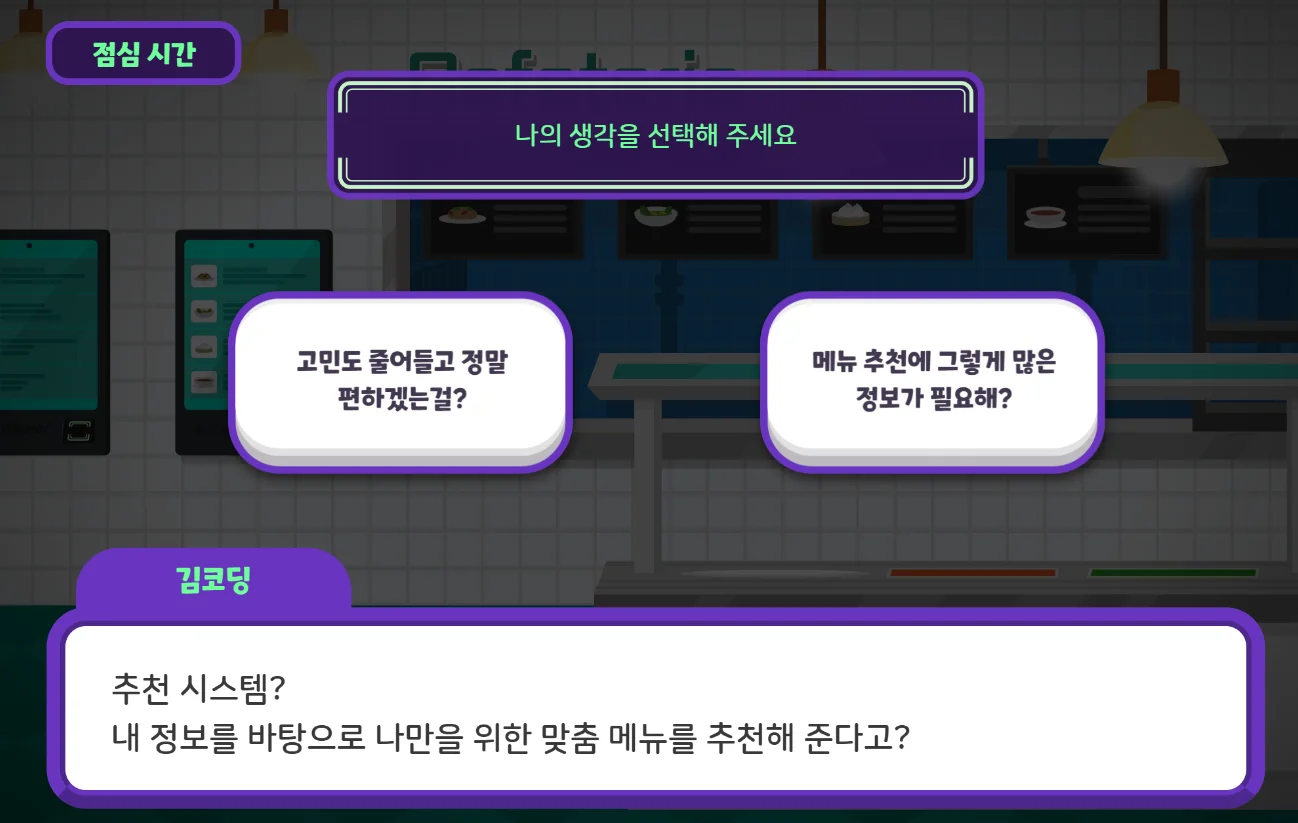 예를 들어 인공지능 윤리의 “누구를 구할까요?”라는 시나리오형 콘텐츠에서는 인공지능 드론이 도덕적 판단을 내려야 하는 상황을 직접 체험해볼 수 있습니다. 학생들은 어떤 기준으로 사람을 구해야 할지 고민하면서, AI 기술이 실제로 우리 삶과 어떻게 연결되는지 깨닫게 되죠. 또 다른 예시로는 “나의 AI 프라이버시” 콘텐츠에서 점심 메뉴 추천 시스템을 통해, 단순히 ‘무엇을 먹을까?’라는 질문에서 나아가 ‘어떻게 개인화된 추천이 만들어지는지’, ‘그 과정에서 고려해야 할 개인정보나 윤리 문제는 없는지’를 자연스럽게 탐색하게 됩니다.