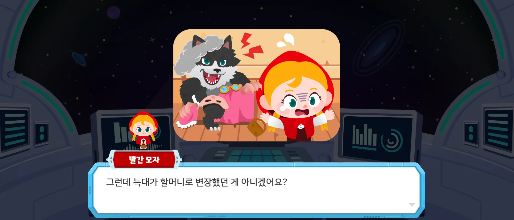 이번에 업데이트 된 ‘데이터 수집’ 코스는 할머니로 변장한 늑대 이야기를 담은 동화, 빨간 모자 동화에서 모티브를 따온 교육 콘텐츠 입니다! 변장한 늑대가 누구인지 알아내야 하는 추리 형식의 콘텐츠로, 학생들에게 데이터 수집의 필요성과 방법을 빠르게 익힐 수 있도록 유도했습니다.