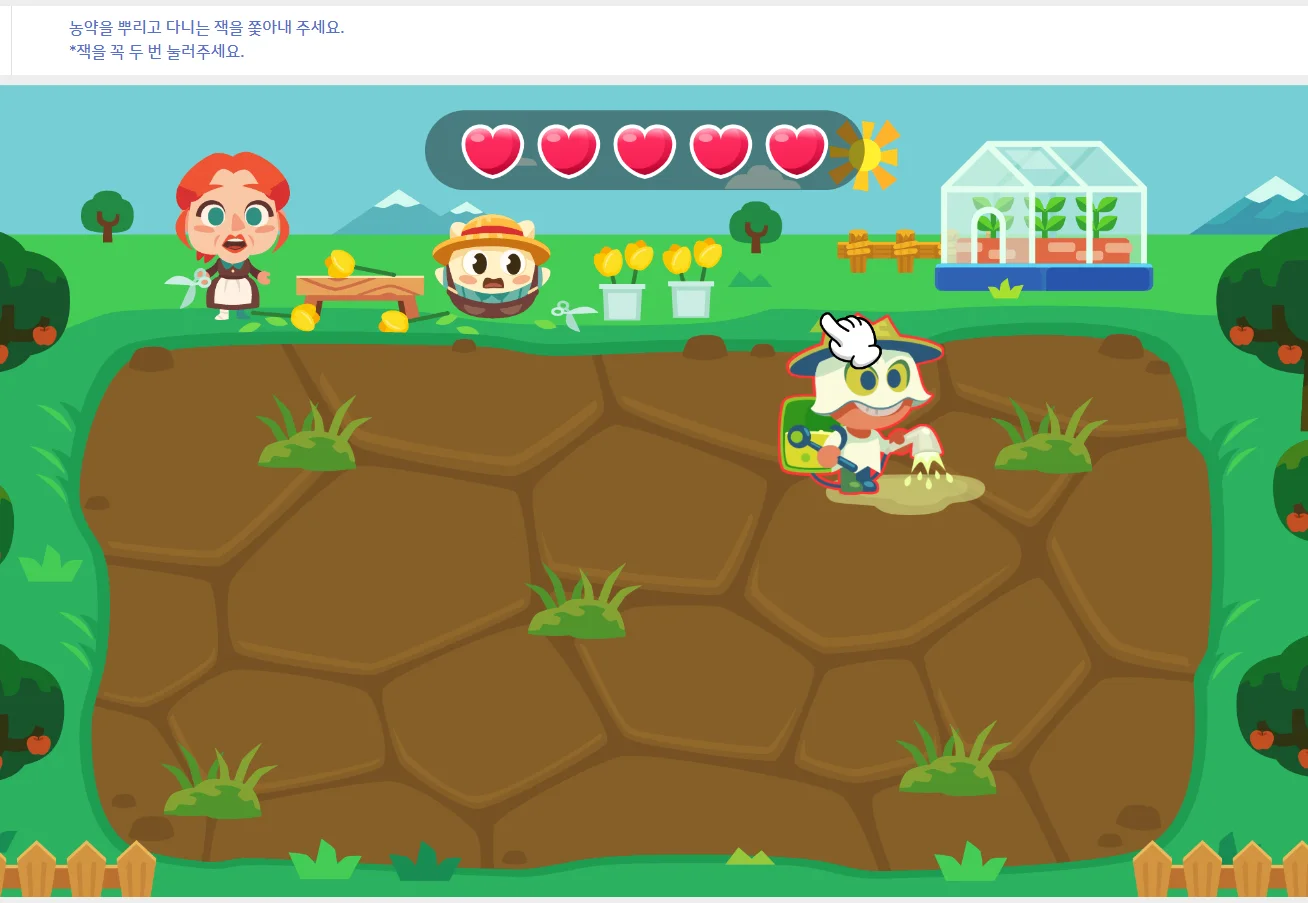 ‘마우스 기능 익히기’, 코드모스 내 학생들에게는 ‘에코팜’ 행성으로 보이는 이 코스에서는 클릭부터 드로우까지 마우스의 기초를 약 20개의 교육 콘텐츠를 통해서 학습할 수 있는 콘텐츠라고 할 수 있습니다. 농장을 운영하는 제나 아주머니를 돕는다는 스토리 텔링으로 이제 막 컴퓨터 학습을 시작하는 어린 아이들에게 학습 동기부여가 되는 콘텐츠이기도 합니다.